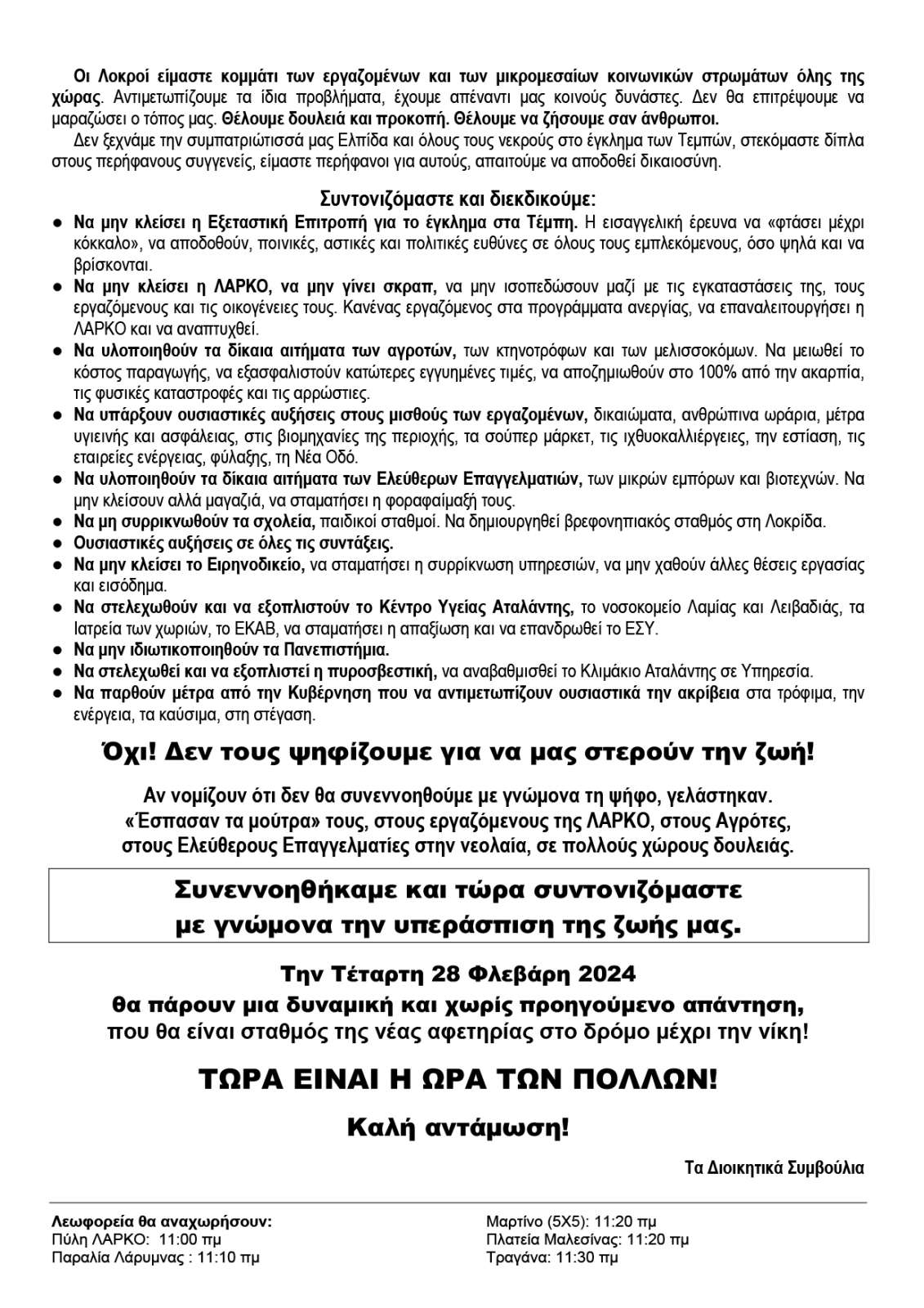 Απεργιακή Κινητοποίηση την Τετάρτη 28/2/24 στις 12:00 στην Κεντρική Πλατεία Αταλάντης