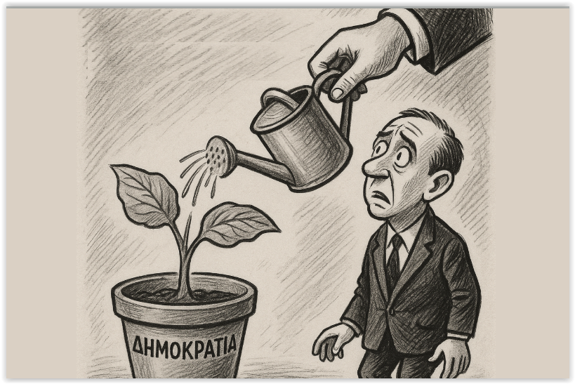 Γράφαμε πριν από δύο εβδομάδες για το ετερόφωτον της Ελληνικής Δημοκρατίας. Ο κοινοβουλευτισμός άντεξε διότι δυτικοσπουδαγμένες ελίτ εργάζονταν για το καταγωγικό όραμα του ελληνικού κράτους, που στόχος ήταν –κατά πως λέει η Διακήρυξη της Α΄ Εθνικής Συνέλευσης Επιδαύρου (1822)– «να εξομοιωθώμεν με τους λοιπούς συναδέλφους μας Ευρωπαίους χριστιανούς». Αναρωτιόμασταν τι μπορεί να συμβεί τώρα που «οι συνθήκες αλλάζουν. Η Δημοκρατία υποχωρεί στις δυτικές χώρες, αυτές που είχαμε οδηγό και πρότυπο» («Το φιλελεύθερο κενό», 2.11.2025).
